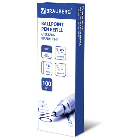 Стержень шариковый BRAUBERG 140 мм, СИНИЙ, узел 1 мм, линия письма 0,5 мм, 170177