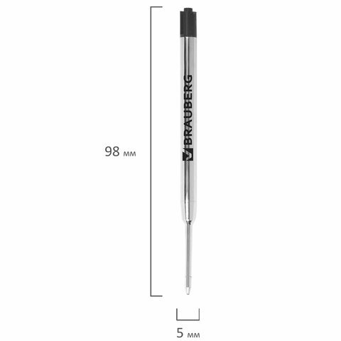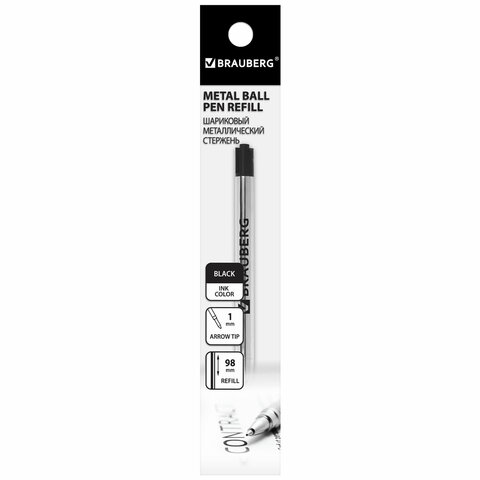 Стержень шариковый BRAUBERG, тип PARKER, металлический, 98 мм, линия письма 0,5 мм, подвес, черный, 170200