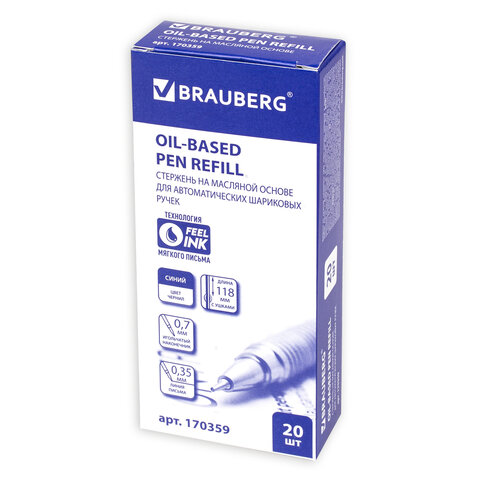 Надежный сменный стержень BRAUBERG для автоматических шариковых ручек.