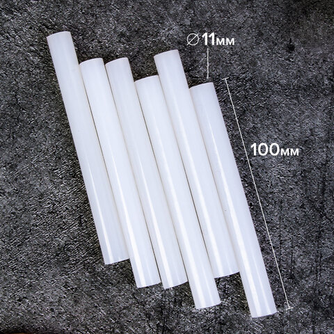 Клеевые стержни, диаметр 11 мм, длина 100 мм, белые, комплект 6 штук, BRAUBERG, европодвес, 670298