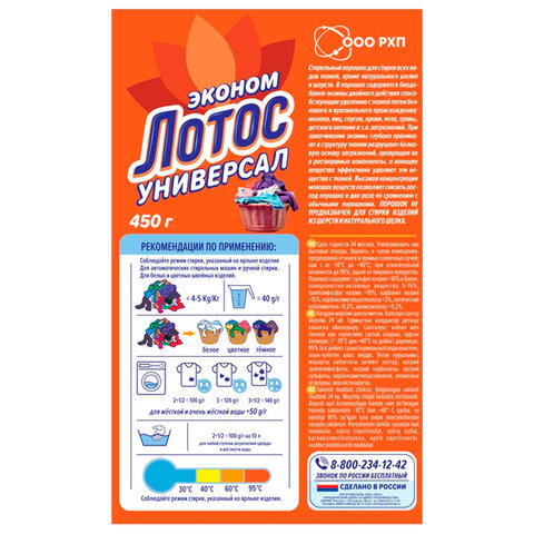 Стиральный порошок универсальный 450 г, ЛОТОС