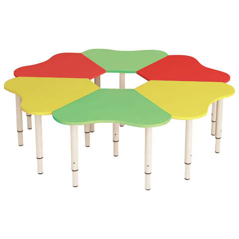 Стол детский "Ромашка", 6 лепестков, 1300х1300х400-580 мм, регулируемый, рост 0-3 (85-145 см), 3 цвета