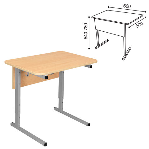 Стол-парта 1-местный регулируемый СУТ.54, 600х500х640-780 мм, рост 4-6, серый каркас, ЛДСП клён