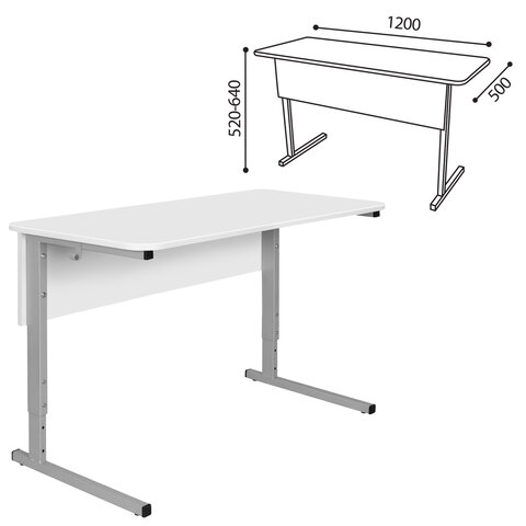Стол-парта 2-местный регулируемый СУТ.55, 1200х500х520-640 мм, рост 2-4, серый каркас, ЛДСП белая