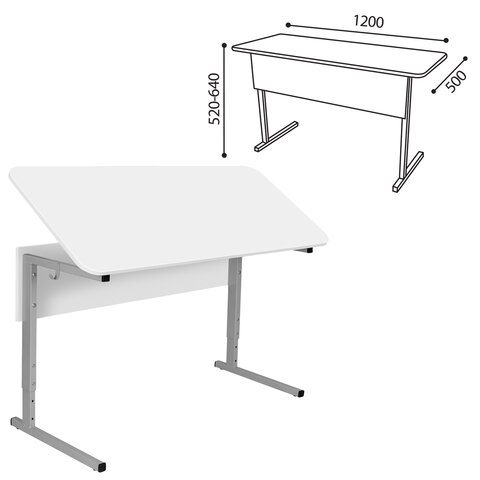 Стол-парта 2-местный, регулируемый угол, СУТ.55-01, 1200х500х520-640 мм, рост 2-4, серый каркас, ЛДСП белая