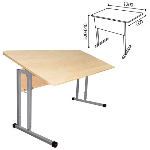 Стол-парта 2-местный, регулируемый угол, "Умник" 1200х500х520-640мм, рост 2-4, серый каркас, ЛДСП клён