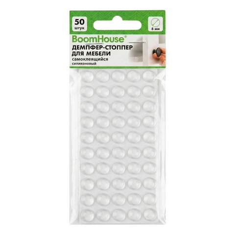 Демпфер стоппер для мебели силиконовый самоклеящийся d=8 мм, КОМПЛЕКТ 50 шт., BoomHouse, 701810