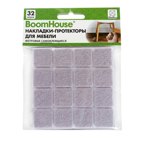 Накладки-протекторы для мебели ФЕТР самоклеящиеся, 20х20мм, бежевые, КОМПЛЕКТ 32 шт, BoomHouse, 701818