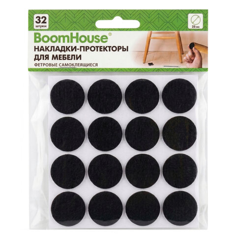 Накладки-протекторы для мебели ФЕТР самоклеящиеся, d=25 мм, черные, КОМПЛЕКТ 32 шт., BoomHouse, 701819