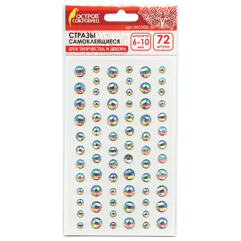 Стразы самоклеящиеся "Кристалл", ассорти, 6-10 мм, 72 шт., на подложке, ОСТРОВ СОКРОВИЩ, 661568