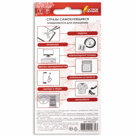С помощью самоклеящихся страз ОСТРОВ СОКРОВИЩ можно декорировать поделки и аппликации, детали интерьера, одежду и гаджеты, реализовать самые смелые творческие идеи.