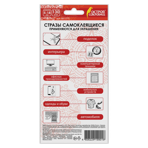 С помощью самоклеящихся страз ОСТРОВ СОКРОВИЩ можно декорировать поделки и аппликации, детали интерьера, одежду и гаджеты, реализовать самые смелые творческие идеи.