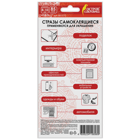 С помощью самоклеящихся страз ОСТРОВ СОКРОВИЩ можно декорировать поделки и аппликации, детали интерьера, одежду и гаджеты, реализовать самые смелые творческие идеи.