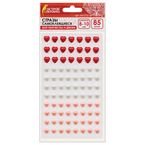 Стразы самоклеящиеся "Сердце", ассорти, 8-10 мм, 85 шт., на подложке, ОСТРОВ СОКРОВИЩ, 661572