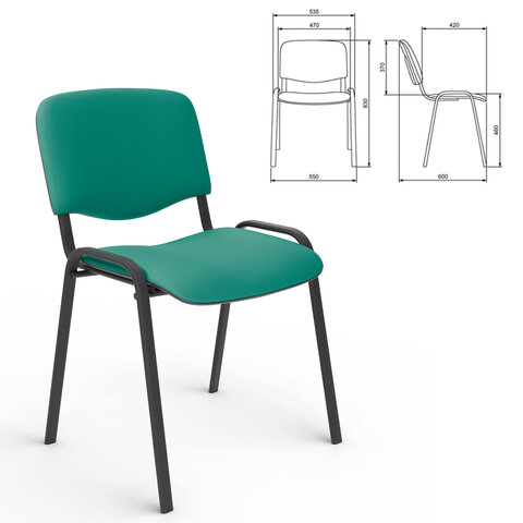 Стул для персонала и посетителей "ИЗО", черный каркас, ткань зеленая, В-27/С-34