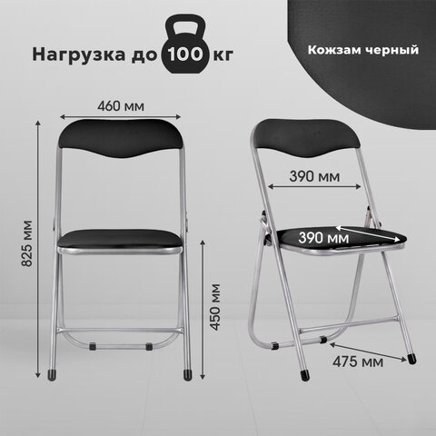 Стул складной для дома и офиса РС04, серебристый каркас, кожзам черный