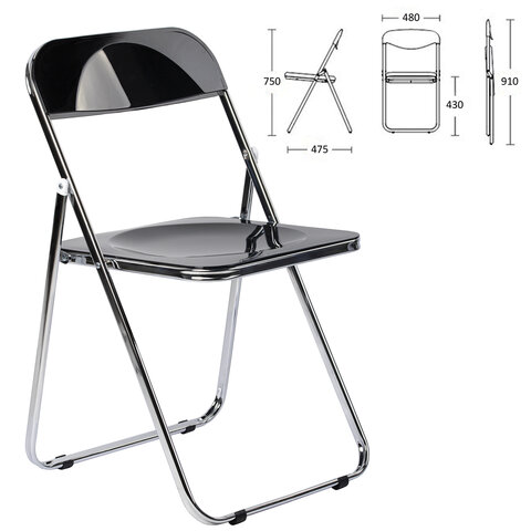 Стул складной глянцевый черный BRABIX "Style CF-015", хромированный каркас, пластик, 533248