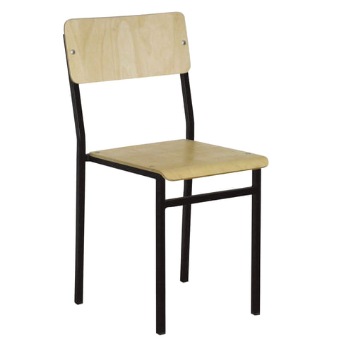Сиденье и спинка выполнены из формованного березового шпона с учетом требований эргономики, покрыты бесцветным лаком. Каркас изготовлен из труб прямоугольного сечения 20х20 мм и толщиной стенки 1,2 мм, окрашен износостойкой полимерной порошковой краской.
