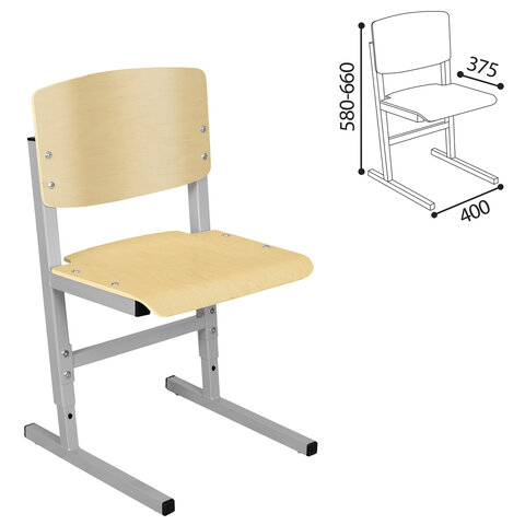 Стул ученический регулируемый СУТ.05, 400х375х580-660 мм, рост 2-4, серый каркас, фанера лак