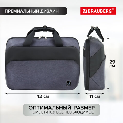 Многофункциональная сумка-портфель BRAUBERG "Modern" с отделением для ноутбука с диагональю экрана до 15-16" способствует безопасной переноске электронных устройств. Премиальный дизайн и МЕТАЛЛИЧЕСКАЯ ФУРНИТУРА подчеркивают статус владельца.