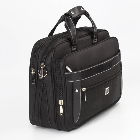 Сумка портфель BRAUBERG CARBON с отделением для ноутбука 15-16", 2 отделения, черная, 31х41х13 см, 240509