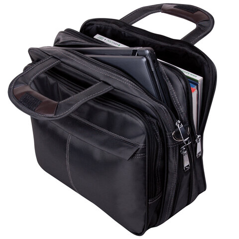 Сумка-портфель BRAUBERG с отделением для ноутбука с диагональю экрана до 15,6" способствует безопасной переноске электронных устройств. Надежный аксессуар с МЕТАЛЛИЧЕСКОЙ ФУРНИТУРОЙ и прочными материалами защитит устройство от внешних воздействий.