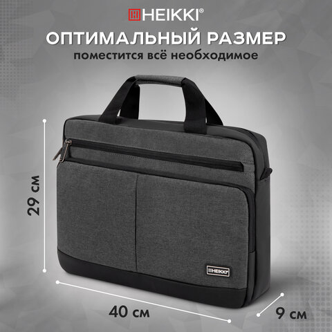 Сумка портфель HEIKKI FORWARD (ХЕЙКИ) с отделением для ноутбука 15,6", темно-серая, 29х40х9 см, 272611