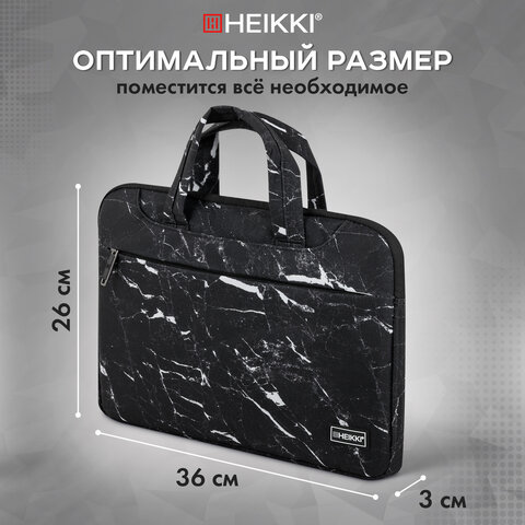 Сумка портфель HEIKKI STYLE (ХЕЙКИ) с отделением для ноутбука 13-14", 3 кармана, черная, 26х36х3 см, 272606