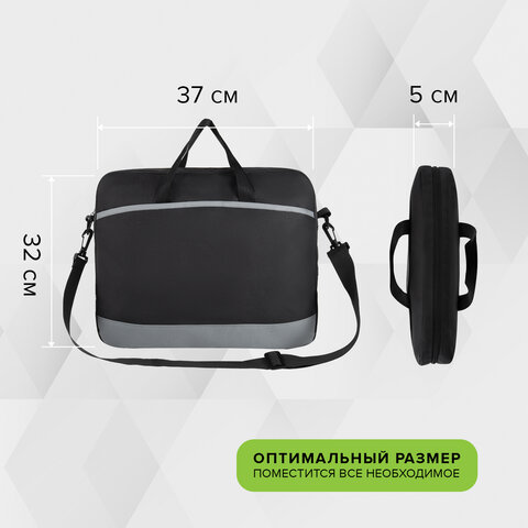 Сумка для документов STAFF MANAGER на молнии с карманом, полиэстер, черно-серый, 32х37х5 см, 270836