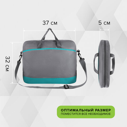Сумка для документов STAFF MANAGER на молнии с карманом, полиэстер, серо-бирюзовая, 32х37х5 см, 270837