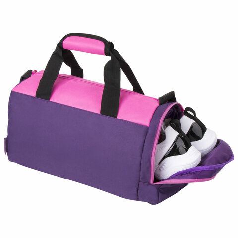 Сумка для занятий спортивная ЮНЛАНДИЯ с отделением для обуви, 40х22х20 см, фиолетовый/розовый, 270094