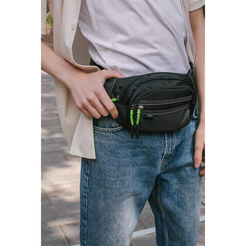 Сумка на пояс HEIKKI PROMPT (ХЕЙКИ), 2 отделения, регулируемый ремень, карман-антивор, черная, 37х14х5 см, 273928