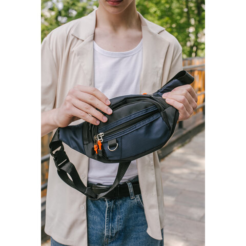 Сумка на пояс HEIKKI PROMPT (ХЕЙКИ), 2 отделения, регулируемый ремень, карман-антивор, синяя, 37х14х5 см, 273927