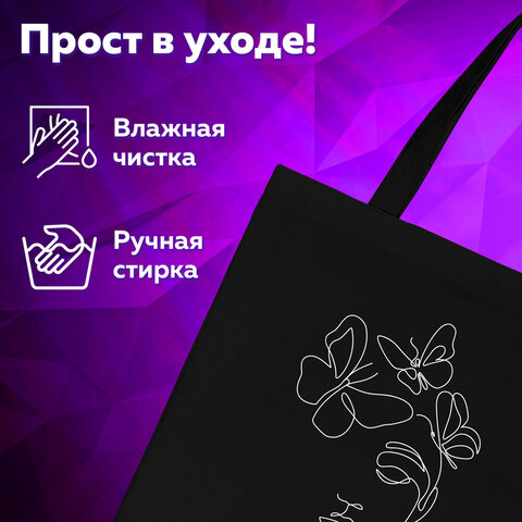 Сумка шоппер BRAUBERG, канвас, 40х35 см, черный, "Vector girl", 271899