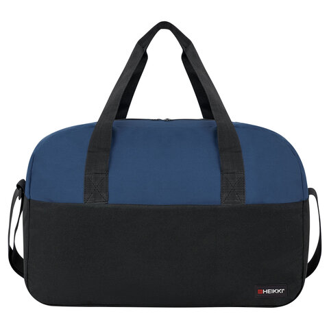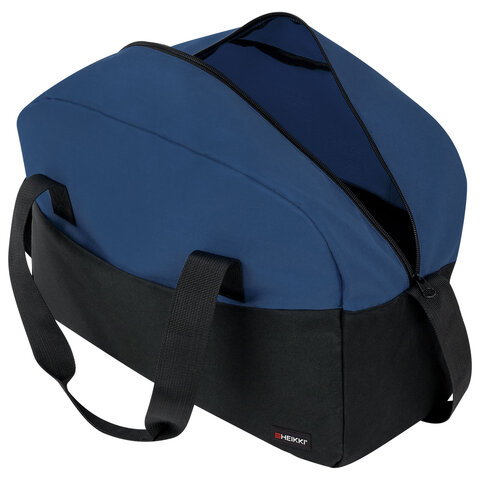 Сумка спортивная HEIKKI BASE (ХЕЙКИ), карман на молнии, черная/темно-синяя, 30x44x17 см, 272622