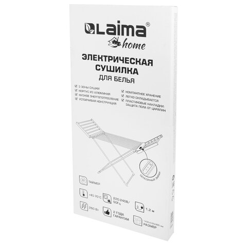 Сушилка для белья напольная, электрическая, раскладная, 3 зоны сушки, алюминиевая, таймер/регулировка темп. 45-70 °С, LAIMA HOME, 700979