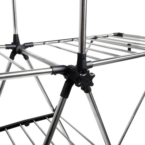 Напольная сушилка для белья LAIMA HOME подходит для установки в любых помещениях. Сушилка имеет удобную складную конструкцию, изготовлена из нержавеющего материала.