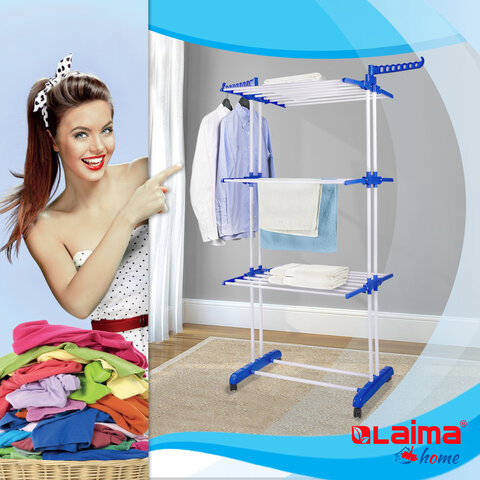 Раскладная трёхуровневая напольная сушилка для белья LAIMA HOME подходит для использования в любых помещениях. Оснащена колесиками со стопорами для удобного использования. Премиальное качество, надежные элементы и узлы, толстостенные трубчатые элементы.