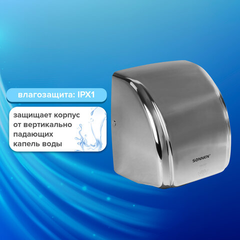 Сушилка для рук SONNEN HD-230S, 2100 Вт, нержавеющая сталь, антивандальная, хром, 604195