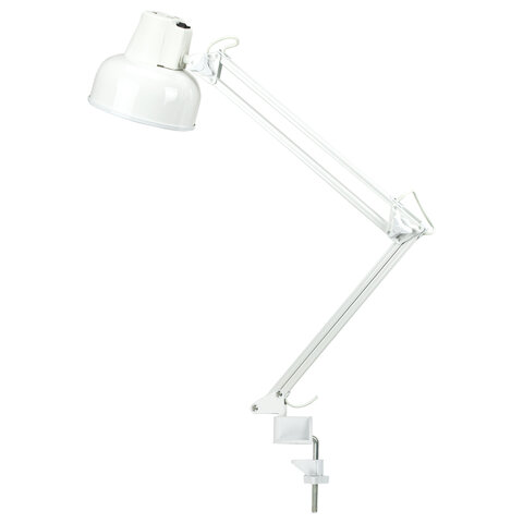Настольный светильник на струбцине для обычных ламп накаливания мощностью 60 Вт. Подвижная конструкция лампы позволяет выбрать удобное положение и направление света для комфортной работы за столом. Возможна установка на подставке, приобретается отдельно.