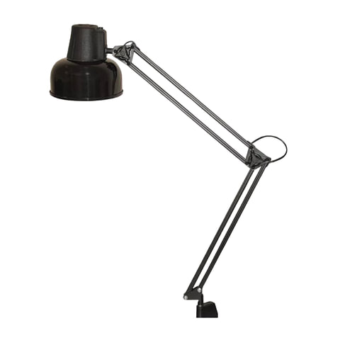 Настольный светильник на струбцине для обычных ламп накаливания мощностью 60 Вт. Подвижная конструкция лампы позволяет выбрать удобное положение и направление света для комфортной работы за столом. Возможна установка на подставке, приобретается отдельно.