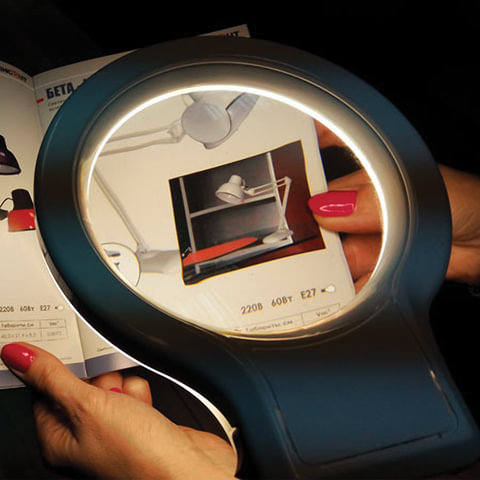 Светодиодный светильник для работы с мелкими деталями: для рукоделия, творчества, ювелирных и часовых мастерских, с увеличительной линзой. Мощность 8 Вт, диаметр линзы 127 мм, светодиодная подсветка по периметру линзы.