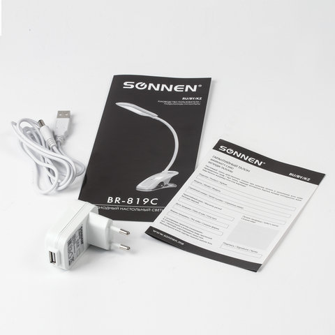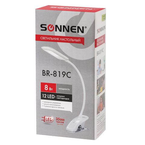 Настольная лампа / светильник SONNEN BR-819C, на прищепке, светодиодная, 8 Вт, белый, 236667