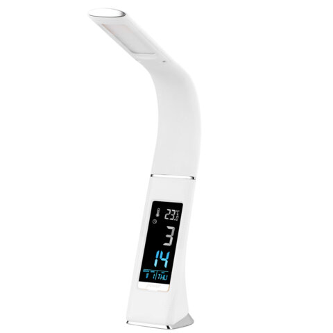 Настольная лампа-светильник является незаменимым атрибутом рабочего места. Модель SONNEN SM-01W прекрасно подойдет для школьника, студента и офисного сотрудника. Светильник оборудован дополнительными функциями: календарь, часы, термометр, будильник.
