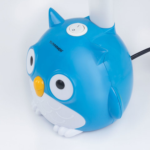 Настольная лампа / светильник SONNEN OU-603, на подставке, цоколь Е27, "Сова", синий, 236674