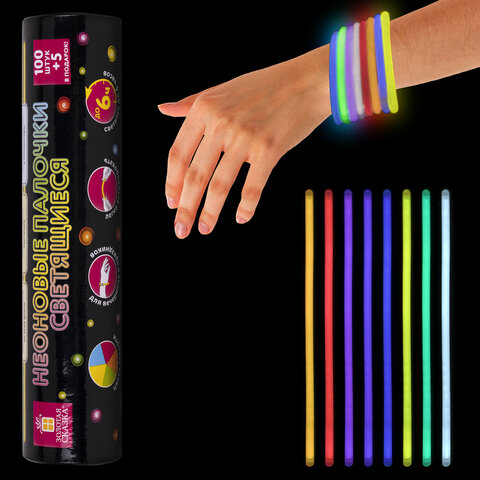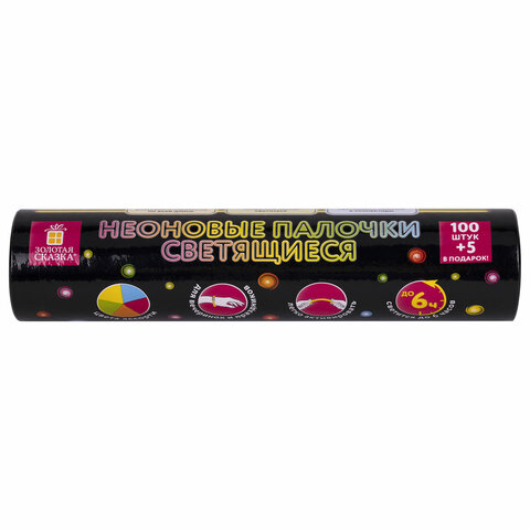 Светящиеся (неоновые) палочки 100 штук + 5 в ПОДАРОК! в тубе, ассорти, ЗОЛОТАЯ СКАЗКА, 662596