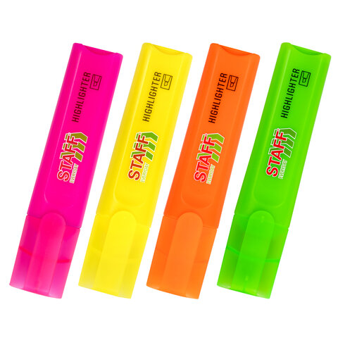 Набор текстовыделителей 4 НЕОНОВЫХ ЦВЕТА, STAFF "EVERYDAY HL-720", линия 1-5 мм, скошенный наконечник, 152555