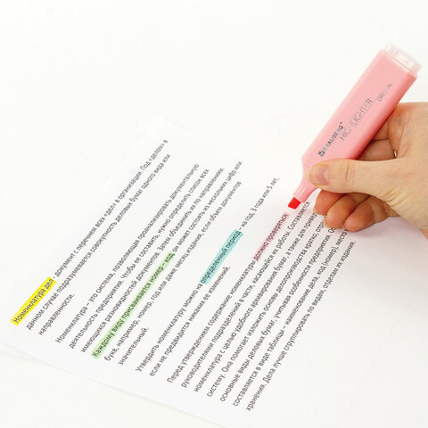 Текстовыделители BRAUBERG "ORIGINAL PASTEL" предназначены для выделения текста на бумаге любого типа, включая факс-бумагу.