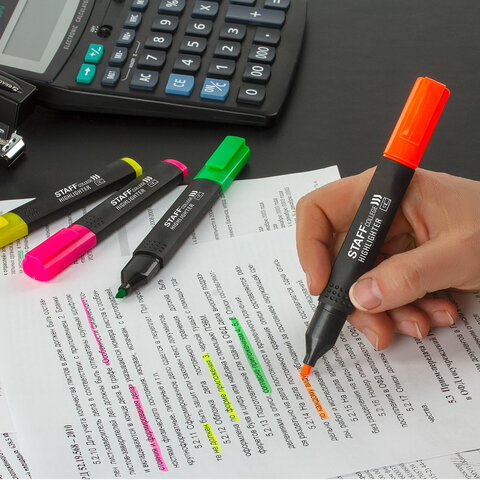 Набор текстовыделителей STAFF College "STICK NEON" предназначен для выделения текста на бумаге любого типа, включая факс-бумагу. 6 неоновых цветов в наборе: желтый, зеленый, оранжевый, розовый, фиолетовый, оранжевый.