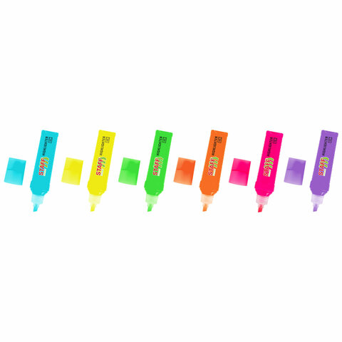 Набор текстовыделителей 6 НЕОНОВЫХ ЦВЕТОВ, STAFF "EVERYDAY HL-707", линия 1-5 мм, скошенный наконечник, 152550